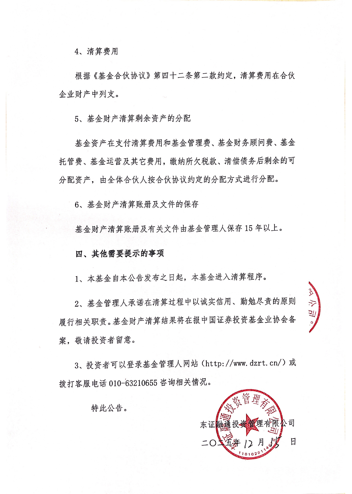 襄阳东证和同探路者体育产业基金合伙企业(有限合伙)清算公告